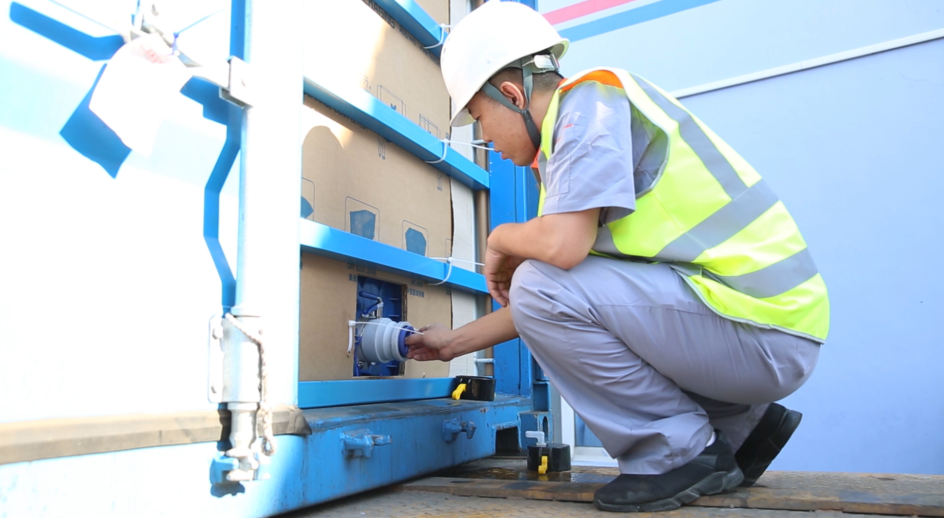 ● Levá dvířka by měla zůstat zavřená, dokud nebude flexitank v podstatě prázdný.