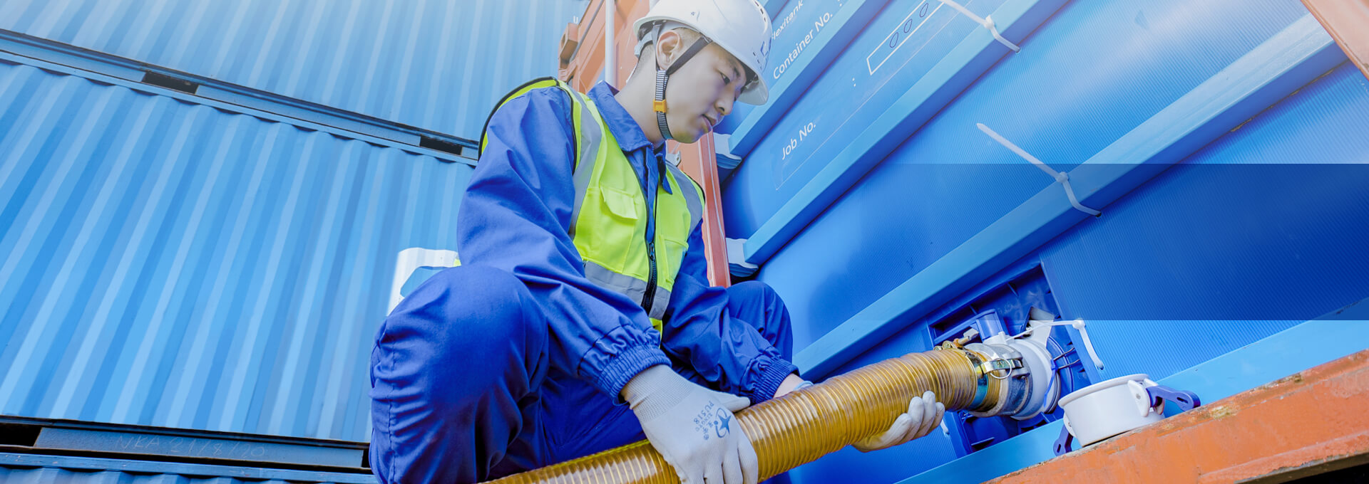 אתר השירות מצויד במיכלים FLEXITANKS, HERMETIC DRY BULK LINER, ועובדים טכניים מקצועיים,